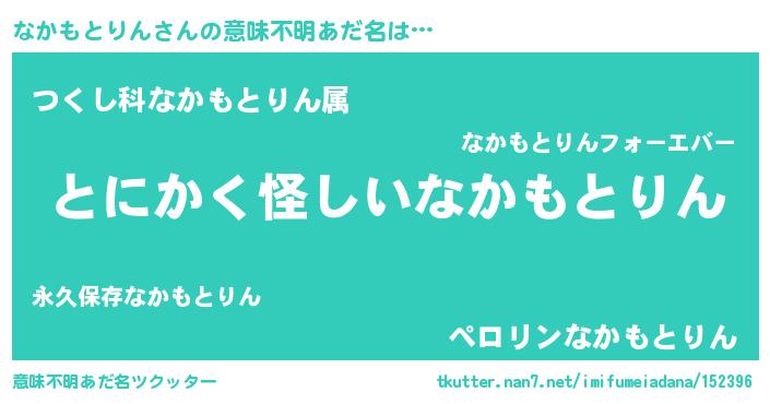 | 女子向けラノベタイトル風あだ名 | 『なかもとりんの卵を拾いまして』 |