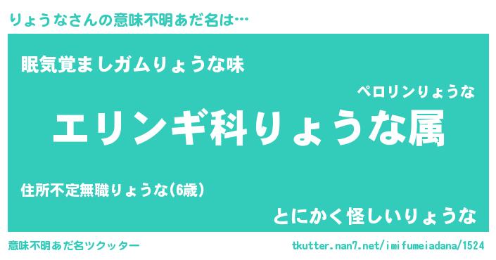 | 男性向けラノベタイトル風あだ名 | 『リョウナスレイヤー』『りょうなの憂鬱』 |