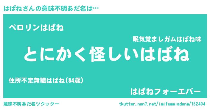 | 女子向けラノベタイトル風あだ名 | 『はばねの卵を拾いまして』 |