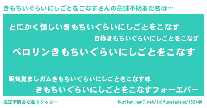 | 自動車の名前っぽいあだ名 | 『キモティマ』『キント』『キスラー』 |