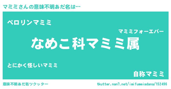 | 男性向けラノベタイトル風あだ名 | 『転生したらマミミだった件』 |