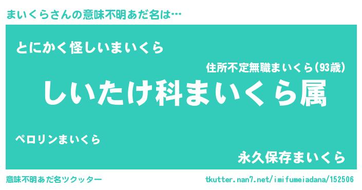 | 胡散臭い通販商品みたいなあだ名 | 『信頼と実績のサプリメント…その名も「まいくら」』 |