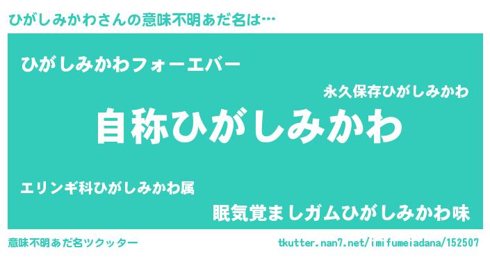 | 肩書あだ名 | 『ひがしみかわ閣下』『ひがしみかわ教授』 |
