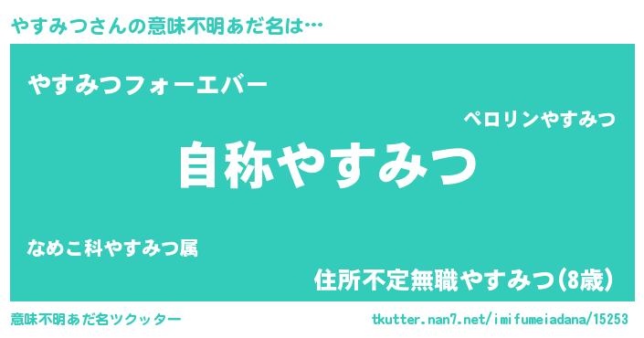 | ファンタジー風あだ名 | 『ゼヤストゥ』『エターナルヤスミツー』 |