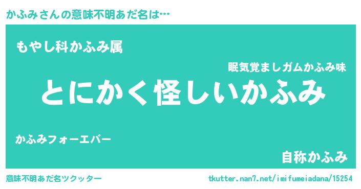 | 胡散臭い通販商品みたいなあだ名 | 『全米が絶賛したサプリメント…その名も「かふみ」』 |