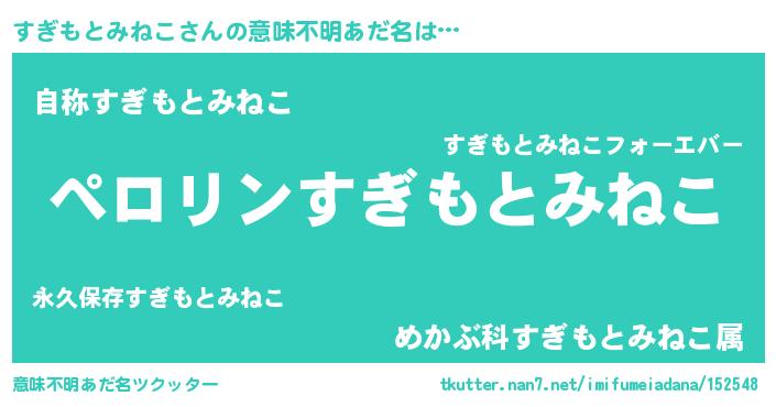 | 男性向けラノベタイトル風あだ名 | 『すぎもとみねこの憂鬱』 |