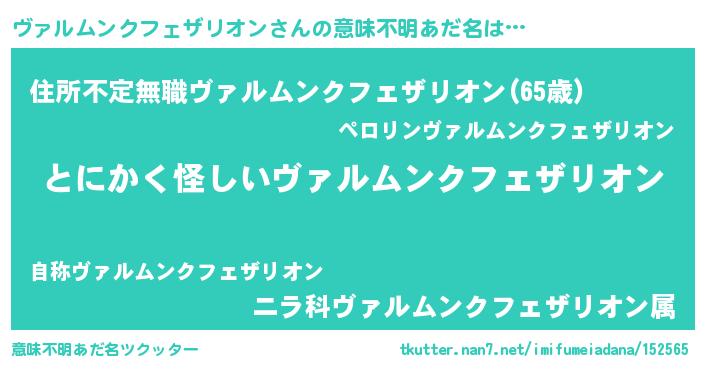 | 欧米人風あだ名 | 『ウサインヴァルムンクフェザリオン』 |