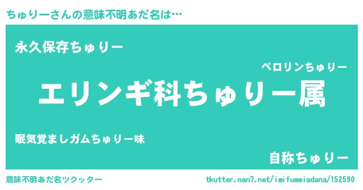 | 伝説のあだ名 | 『聞きしに勝る吟遊詩人ちゅりー』 |