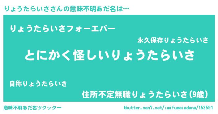 | ポケモン風あだ名 | 『ヒリョウタライサ』『リョウダネ』 |