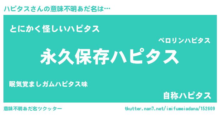 | ヘコむあだ名 | 『ハピタス(爆)』『ハピっぺ』『牛乳』 |