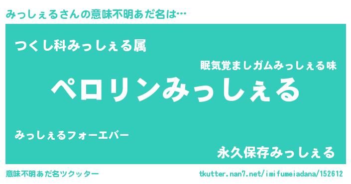 | 胡散臭い通販商品みたいなあだ名 | 『モテモテ間違いなしブレスレット…その名も「みっしぇる」』 |
