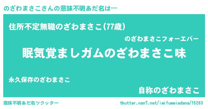 | 男性向けラノベタイトル風あだ名 | 『ノーゲーム・ノーノザワマサコ』 |