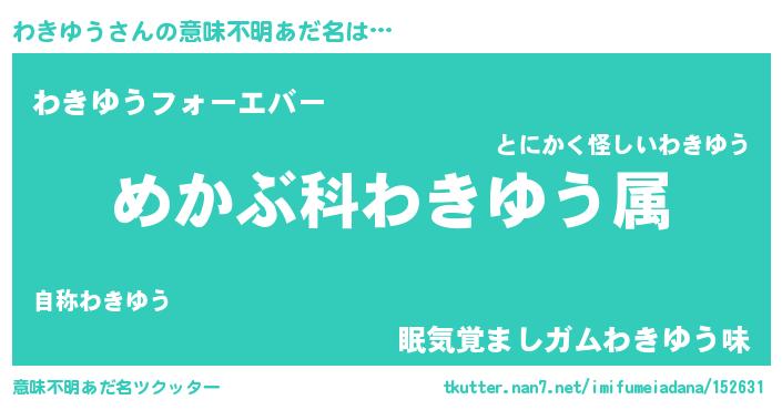 | 男性向けラノベタイトル風あだ名 | 『ワキユウスレイヤー』 |