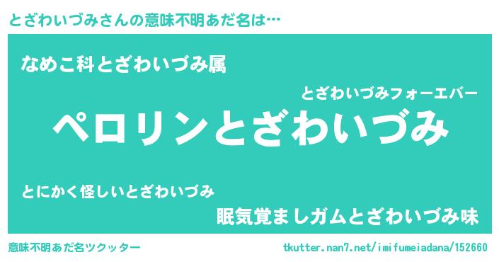 | 男性向けラノベタイトル風あだ名 | 『とざわいづみの憂鬱』 |