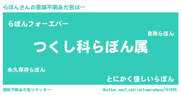 | 男性向けラノベタイトル風あだ名 | 『うちのらぼんが世界を掌握している!』 |