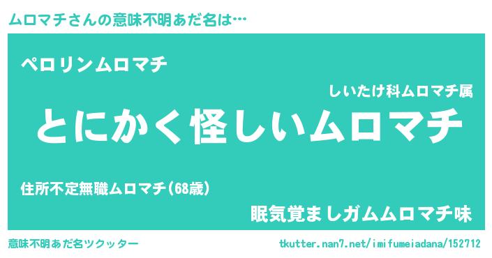 | 自動車の名前っぽいあだ名 | 『ムルトロパン』『ムロティマ』 |