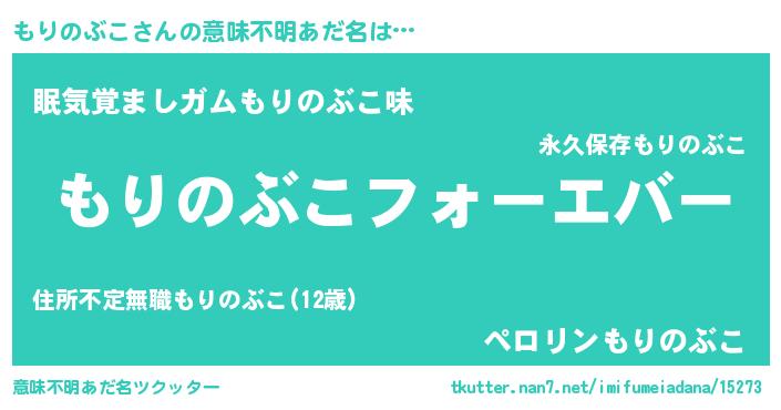 | 女子向けラノベタイトル風あだ名 | 『もりのぶこの雑貨屋さん』 |