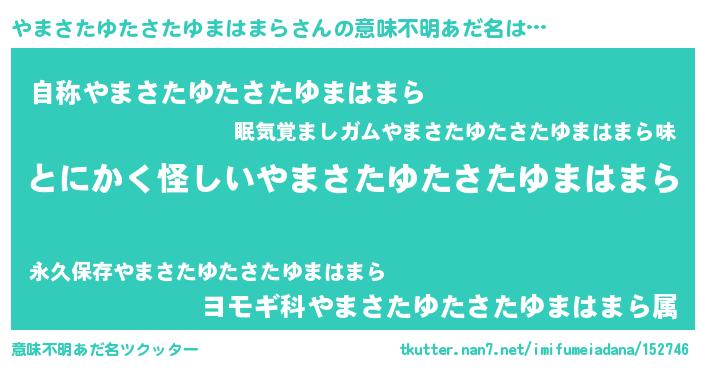 女子向けラノベタイトル風あだ名 | 『やまさたゆたさたゆまはまらの卵を拾いまして』 |