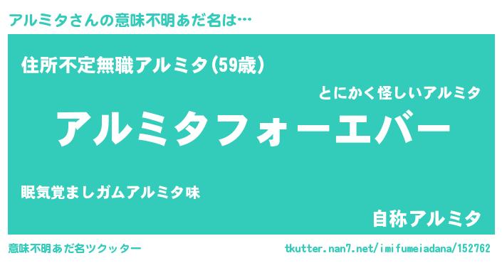 | 欧米人風あだ名 | 『アルミタクリステル』 |