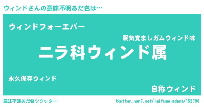 | 男性向けラノベタイトル風あだ名 | 『ウィンド~年齢イコール彼女いない歴の魔法使い~』 |