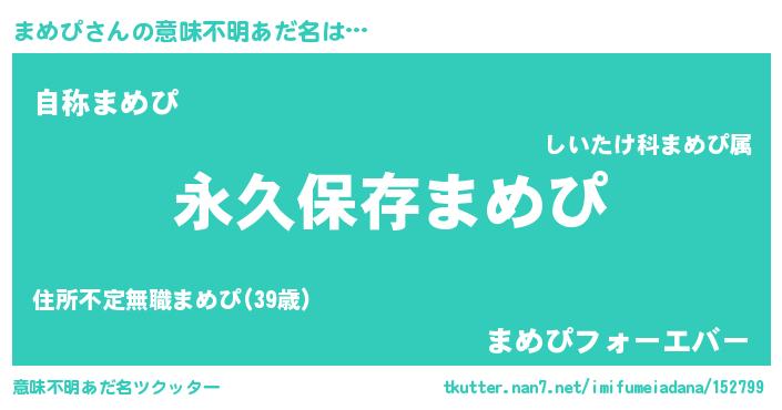 | ヘコむあだ名 | 『まめぴ(爆)』『なまこ酢』 |