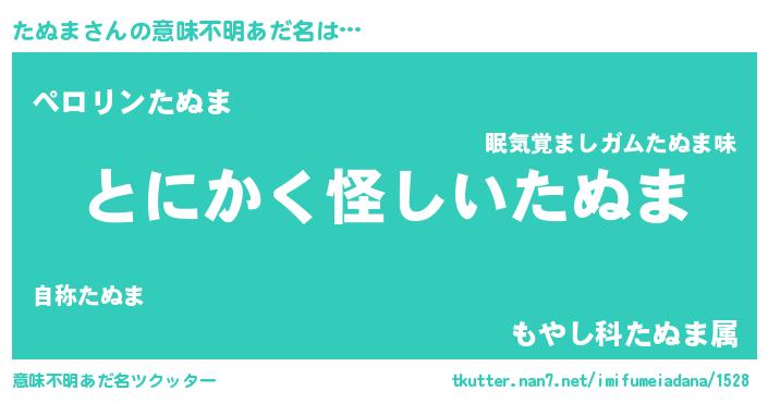| 胡散臭い通販商品みたいなあだ名 | 『信頼と実績のサプリメント…その名も「たぬま」』 |