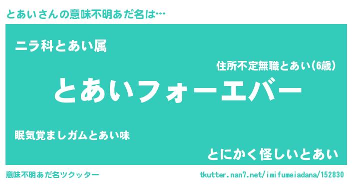 | ヘコむあだ名 | 『つくし』『とあお』『とあもー』 |