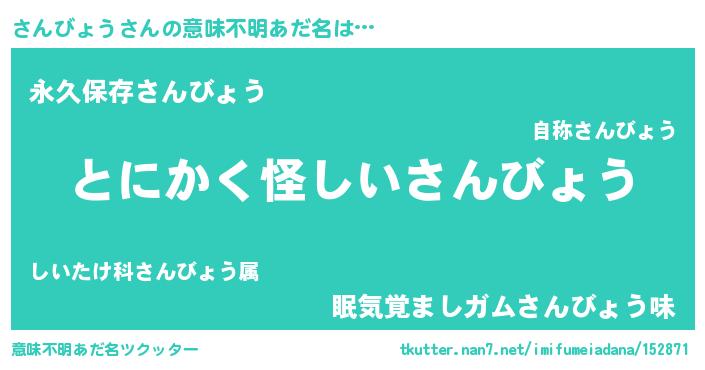 | 女子向けラノベタイトル風あだ名 | 『さんびょうの卵を拾いまして』 |