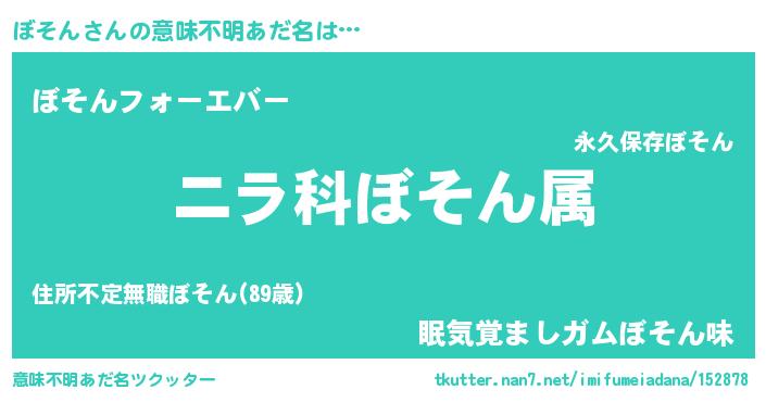 | ヒーロー風カッコイイあだ名 | 『ウルトラぼそんマン』『ネオボソン』 |