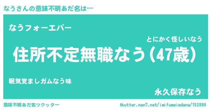 | 男性向けラノベタイトル風あだ名 | 『この素晴らしい世界になうを!』 |
