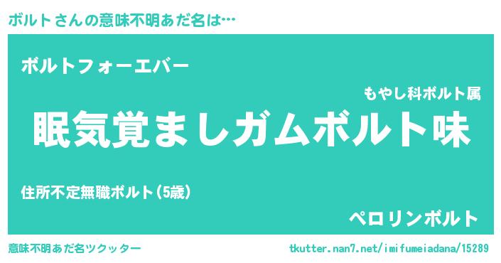 | ヒーロー風カッコイイあだ名 | 『慈愛の使者ボルト』『スーパーボルト』 |