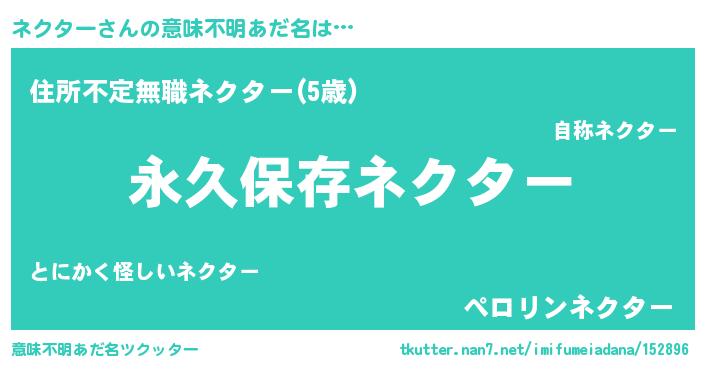 | 男性向けラノベタイトル風あだ名 | 『ネクターという概念が存在しない退屈な世界 』 |