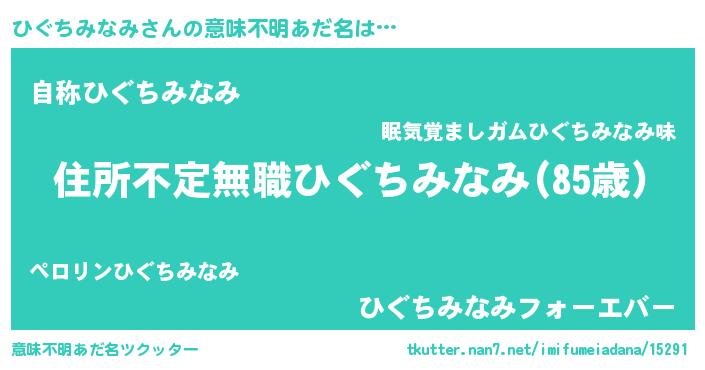 | 胡散臭い通販商品みたいなあだ名 | 『あなたにだけ特別に提供する世界で10本だけ現存している希少なブランデー…その名も「ひぐちみなみ」』 |