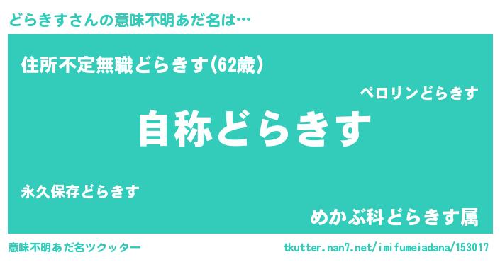 | 男性向けラノベタイトル風あだ名 | 『Re:どらきすから始める異世界生活』 |