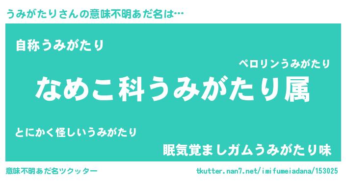 | 男性向けラノベタイトル風あだ名 | 『転生したらうみがたりだった件』 |