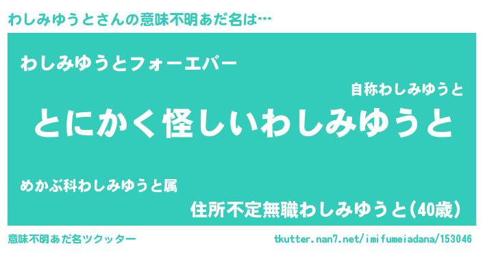 | 欧米人風あだ名 | 『ウサインわしみゆうと』 |