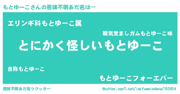 | 男性向けラノベタイトル風あだ名 | 『もとゆーこの嫁は女の子じゃないと思った?』 |