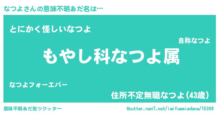 | 男性向けラノベタイトル風あだ名 | 『転生したらなつよだった件』 |