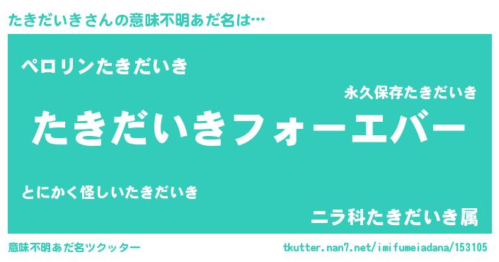 | 男性向けラノベタイトル風あだ名 | 『やはりたきだいきの青春ラブコメはまちがっている 』 |
