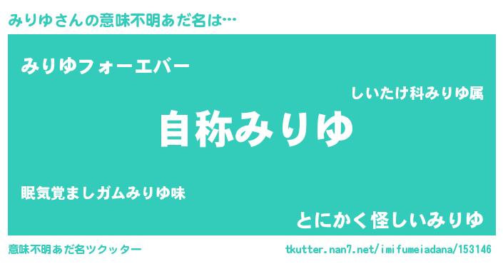 | 欧米人風あだ名 | 『ケンブリッジみりゆ』『ウサインみりゆ』 |