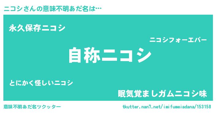 | 男性向けラノベタイトル風あだ名 | 『Re:ニコシから始める異世界生活』 |