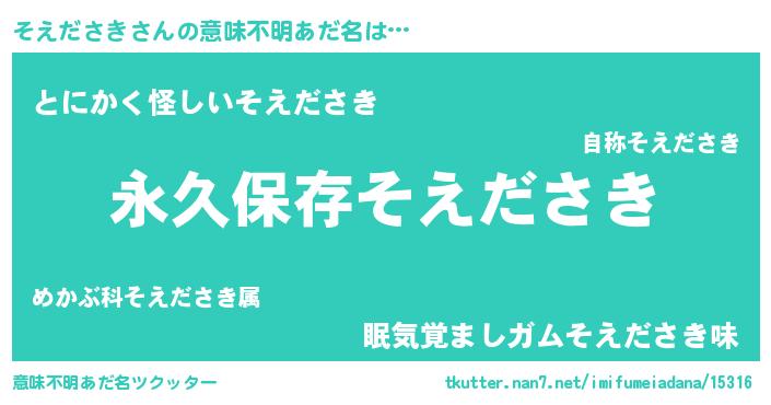 | 男性向けラノベタイトル風あだ名 | 『そえださきという概念が存在しない退屈な世界 』 |