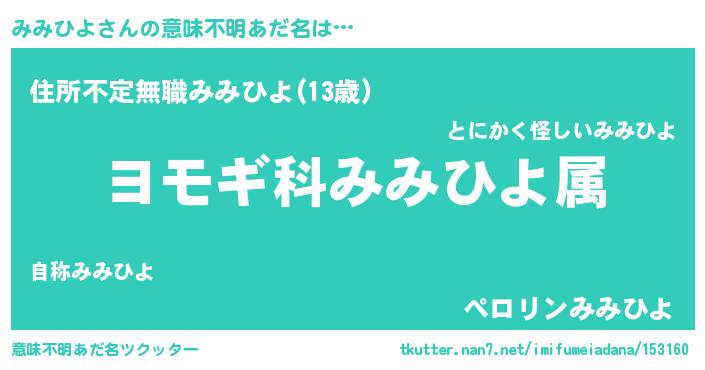 | ヒーロー風カッコイイあだ名 | 『仮面ミミダー』『スーパーミミヒヨ』 |
