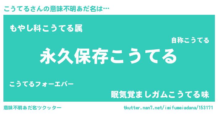 | 男性向けラノベタイトル風あだ名 | 『こうてるという概念が存在しない退屈な世界 』 |