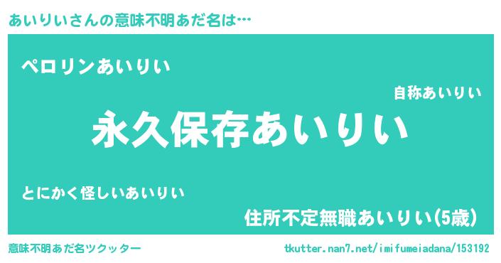 | ヘコむあだ名 | 『あいりい(震え声)』『あいにゅー』 |