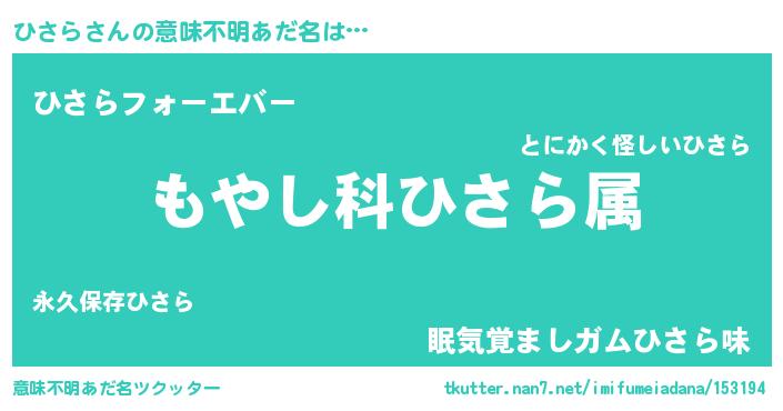 | 欧米人風あだ名 | 『ひさら・ステッグマイヤー』 |