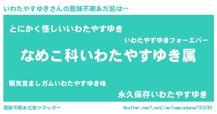 | ヘコむあだ名 | 『いわぷりん』『いわたやすゆき(笑)』 |