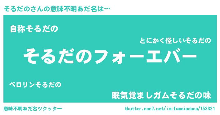 | ヘコむあだ名 | 『なまこ酢』『そるお』『そるもー』 |