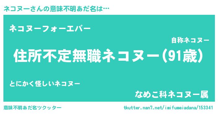 | 男性向けラノベタイトル風あだ名 | 『この素晴らしい世界にネコヌーを!』 |