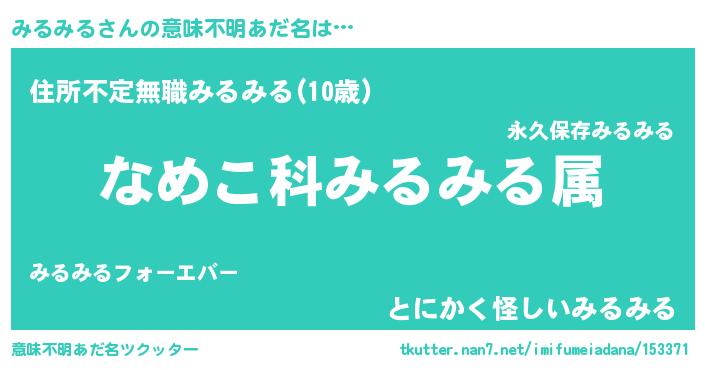 | 女子向けラノベタイトル風あだ名 | 『みるみるの玉の輿計画!』 |